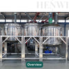 - **Heating and Mixing**: Both the oil and water phase tanks are equipped with heating elements and mixers to ensure that the ingredients in each tank are properly heated and mixed before they are combined in the main emulsifying tank.