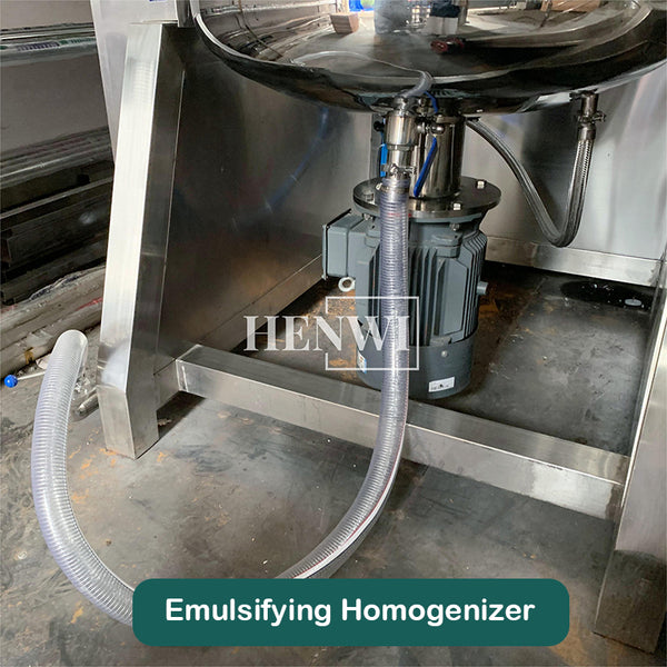 - **High-Shear Homogenizer**: Located at the bottom of the tank, the high-shear homogenizer creates a powerful vortex that ensures thorough emulsification by breaking down oil and water droplets into micron or even nano-sized particles. This results in a stable and smooth emulsion with excellent texture.