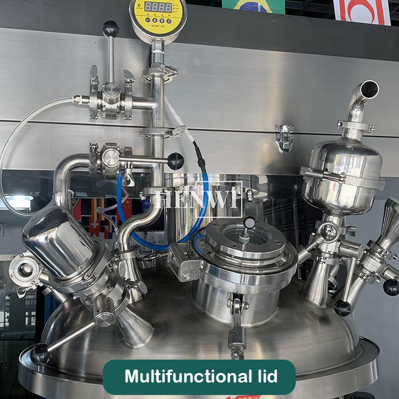 - **High-Shear Homogenizer**: Located at the bottom of the tank, the high-shear homogenizer creates a powerful vortex that ensures thorough emulsification by breaking down oil and water droplets into micron or even nano-sized particles. This results in a stable and smooth emulsion with excellent texture.