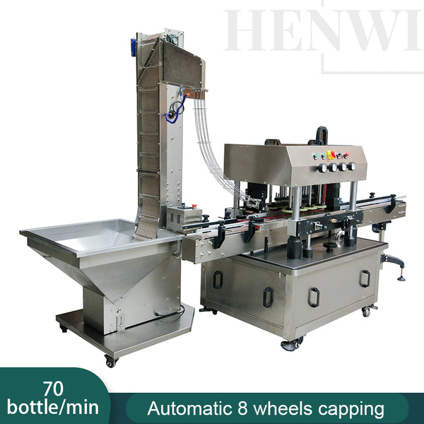 The 8-wheel system provides increased grip and precision, allowing for fast and stable cap tightening, suitable for high-speed production lines.