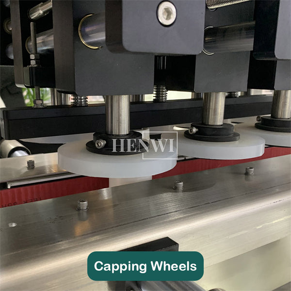 The capping wheel applies torque to the bottle cap through rotational motion, so that the bottle cap can be firmly locked on the bottle mouth. This process ensures the tightness of the bottle cap and the bottle to prevent leakage of the contents.