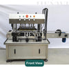 This machine uses an 8-wheel spindle (or friction wheel) system for capping. The 8 wheels apply consistent pressure on the caps, securing them onto the bottles with even torque.