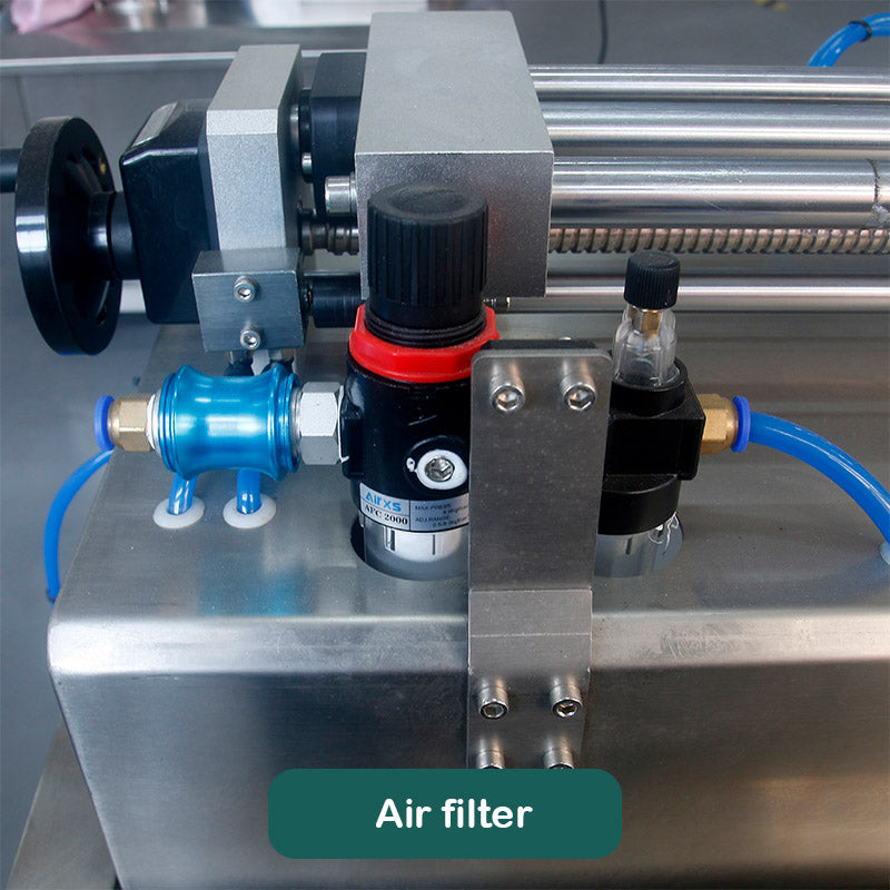 The air pressure gauge displays the air pressure level in the pneumatic system in real time, helping the operator monitor the working status of the system. Ensure that the air pressure is within the set range to avoid equipment failure or inaccurate filling caused by excessive or low air pressure.