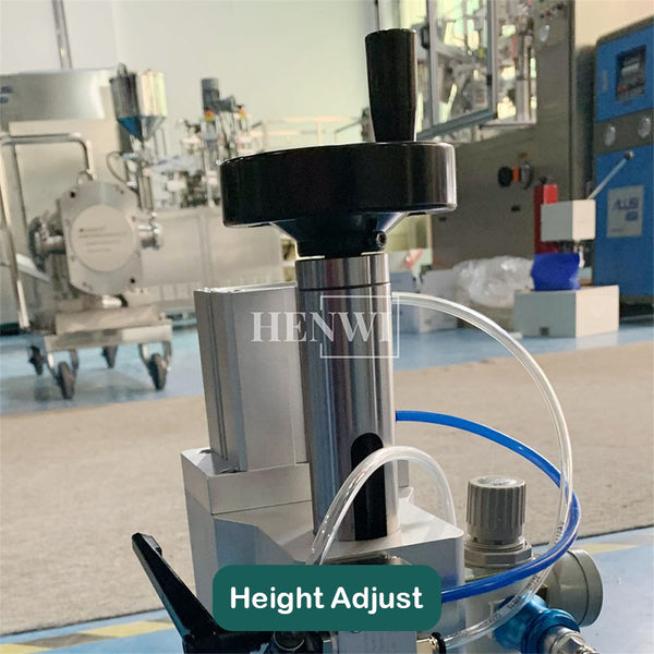 The height adjustment hand wheel allows the operator to quickly adjust the height of the crimping machine according to production needs to accommodate ampoules of different heights and sizes. This flexibility ensures that the equipment can handle a variety of products and improves the applicability of the production line.